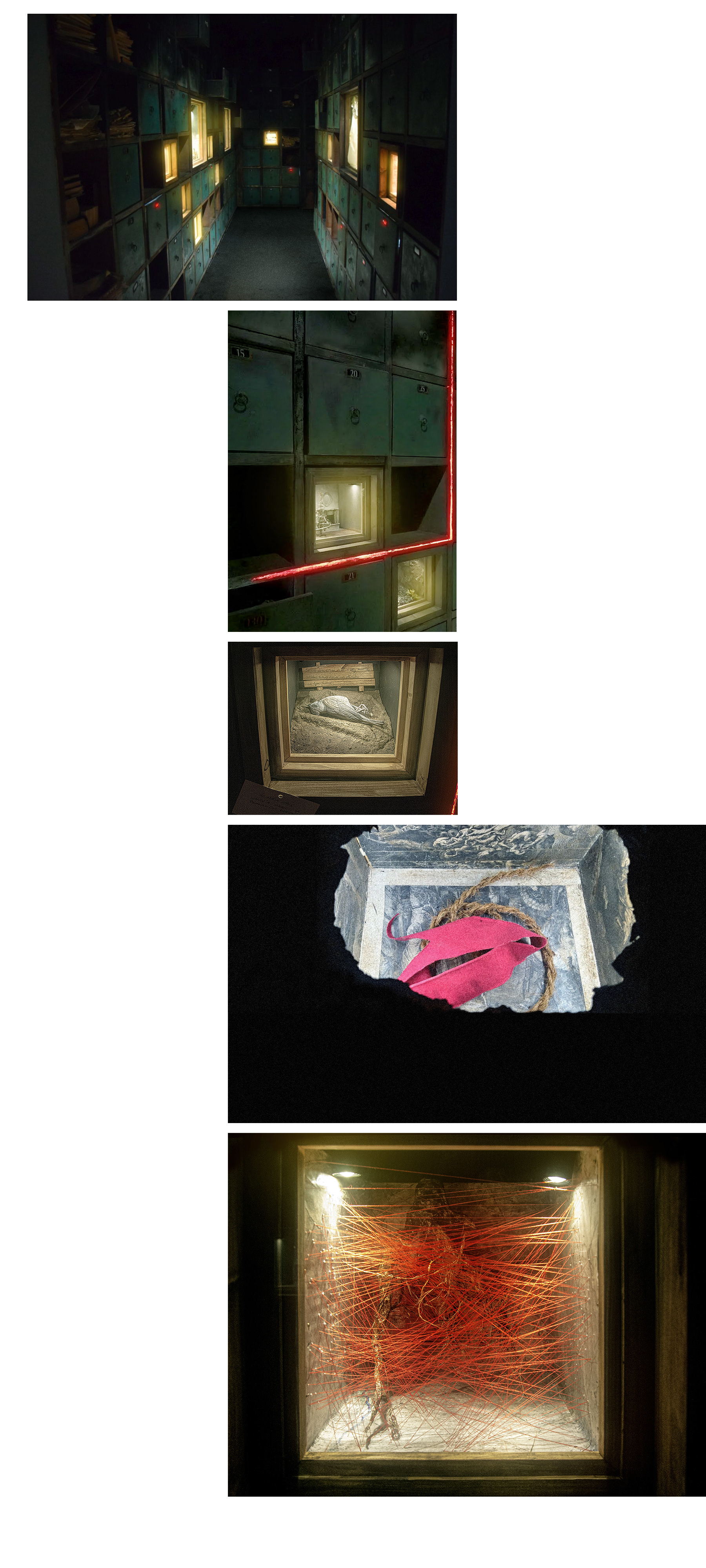The principle that dictates the narrative and poetics of the scenes and the structure of the plot is the adoption of the perspective of the exhibition's protagonist. The chosen convention of presenting her biography as a visionary sequence of memories — a journey through the recesses of her mind — is dictated by the protagonist's introversion. Her mind holds the greatest narrative potential: a vivid imagination, her own cognitive filter, errors and distortions in her perception of reality, dreams, ambitions, a mosaic of emotions, intertwining (sometimes contradictory) worldviews, repressions, and transference. All of this swirls around in her head, and the viewer enters her mind — exploring, gathering clues, saturating themselves with emotions, activating their imagination, and making observations.